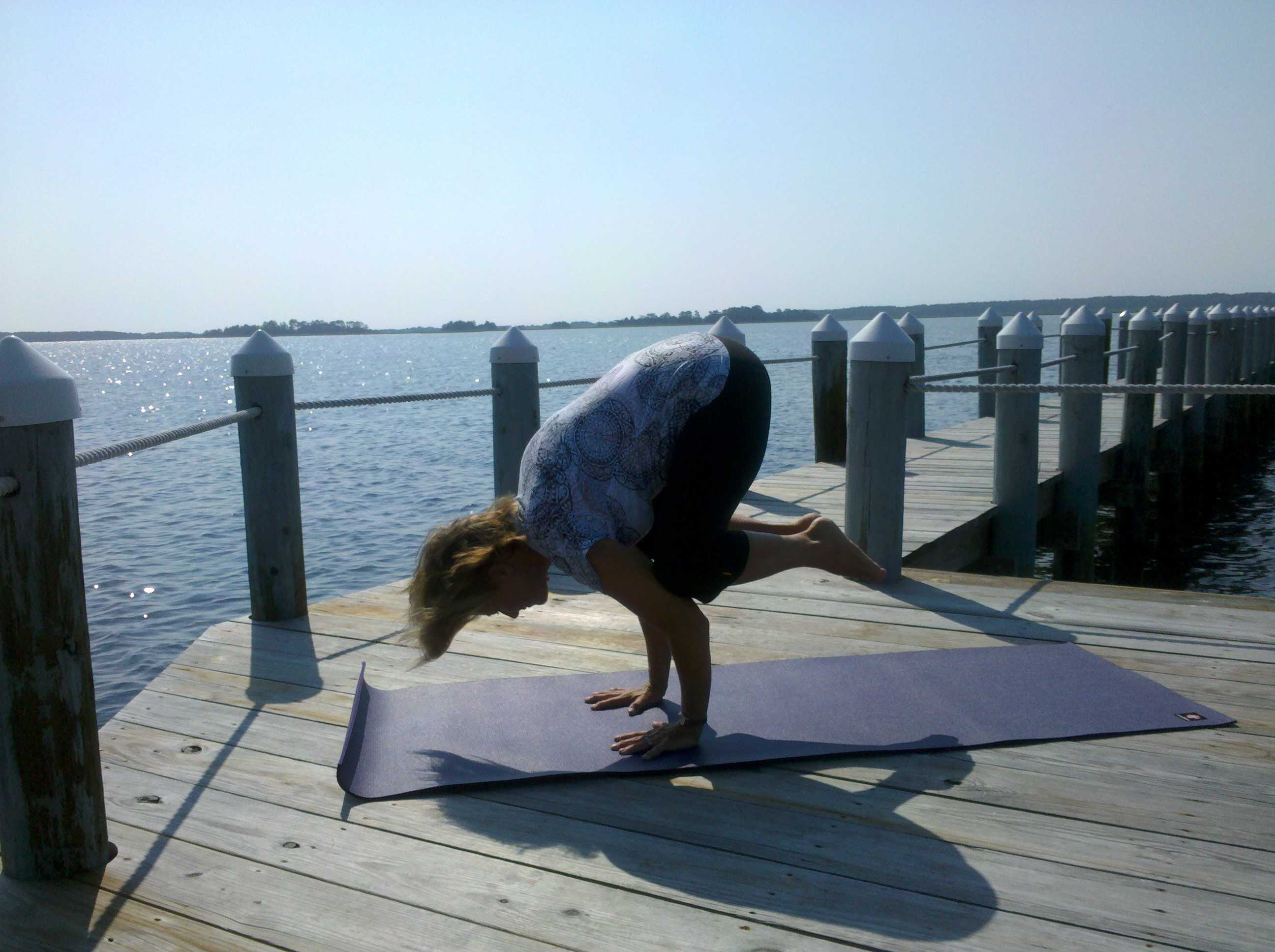 Not only does Nancy B do great job of balancing home life – 3 kids, husband, yoga, school functions, kids’ sports & more; but here she is on a family vacation in Chincoteague (VA) doing her balancing act amidst the sun, wind, and sea.