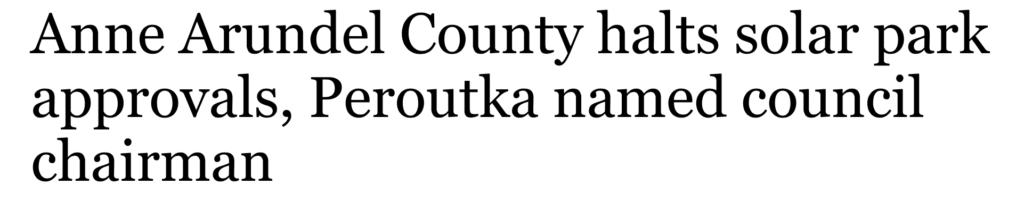 For me, the matter is not that I am against solar – far from it. But just because some outside company, that is mostly looking to profit from Maryland resources, uses the term “solar”, it does not mean that they can proceed in any way they wish, including bypassing standard norms and protocol with regards to public hearings and land use.