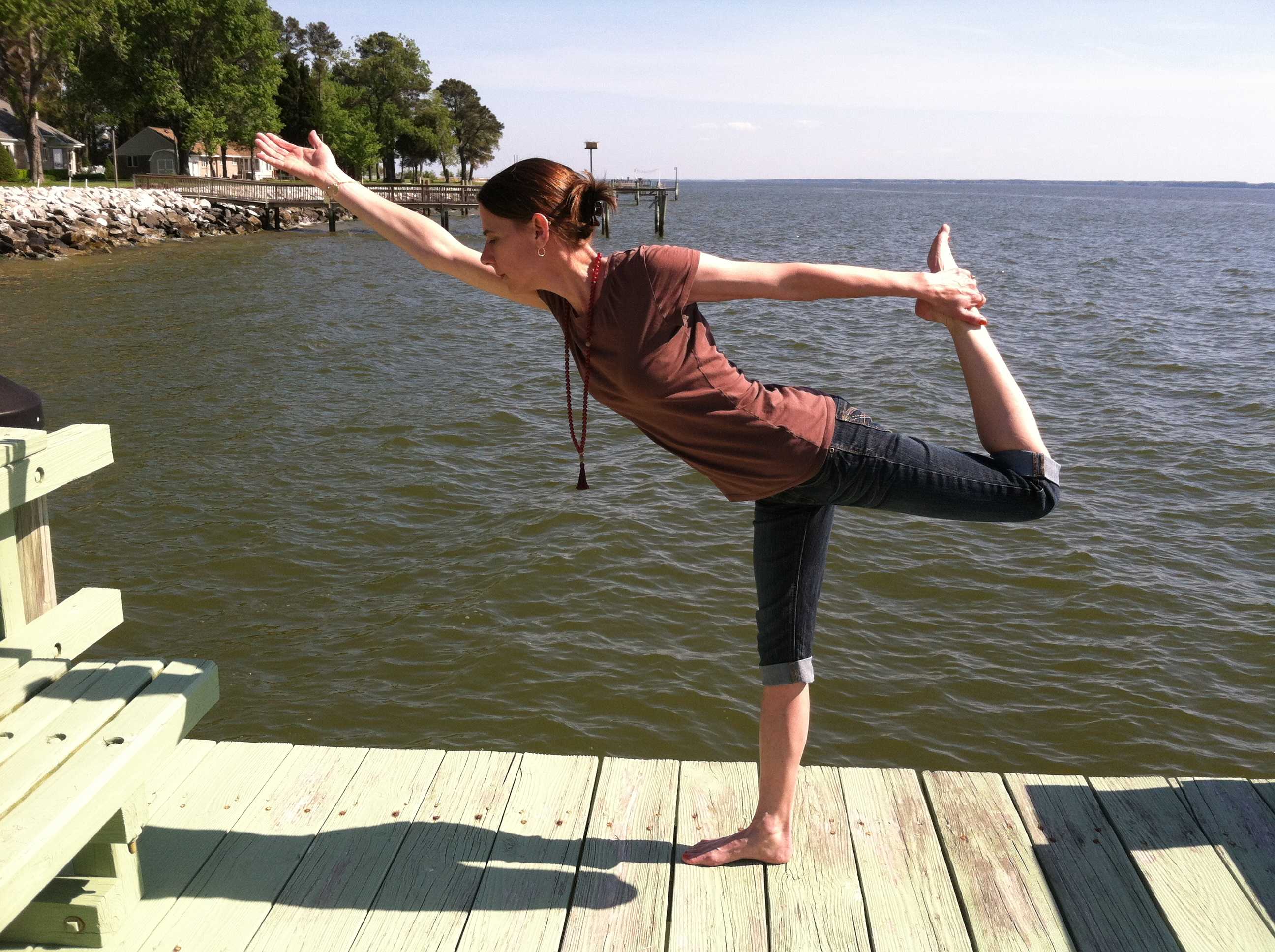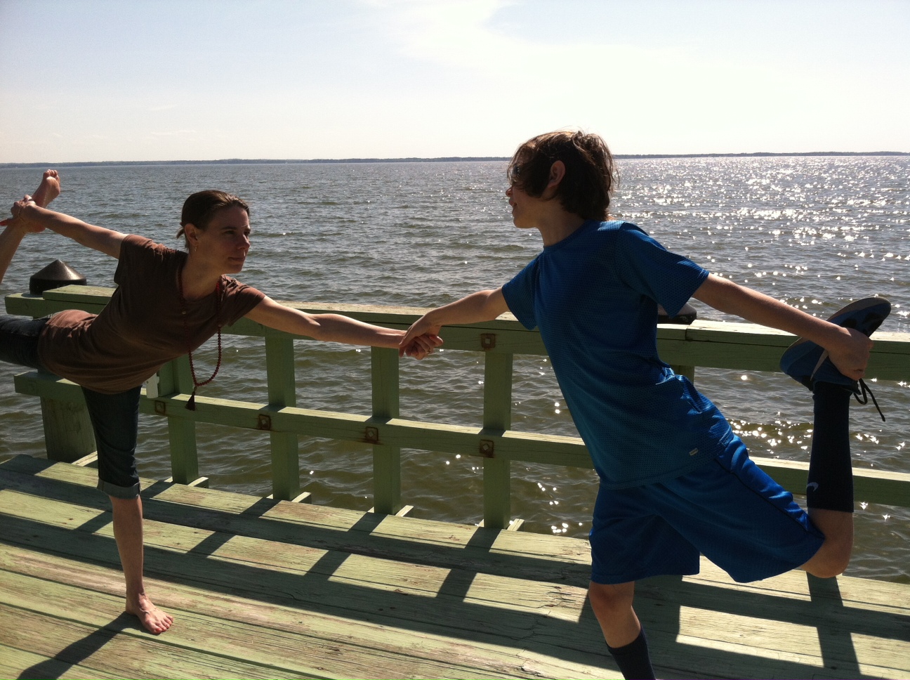 Teresa writes, “Here are a few pictures of Wesley and I doing yoga on my parents pier in Tall Timbers Md. Mother’s Day.”
