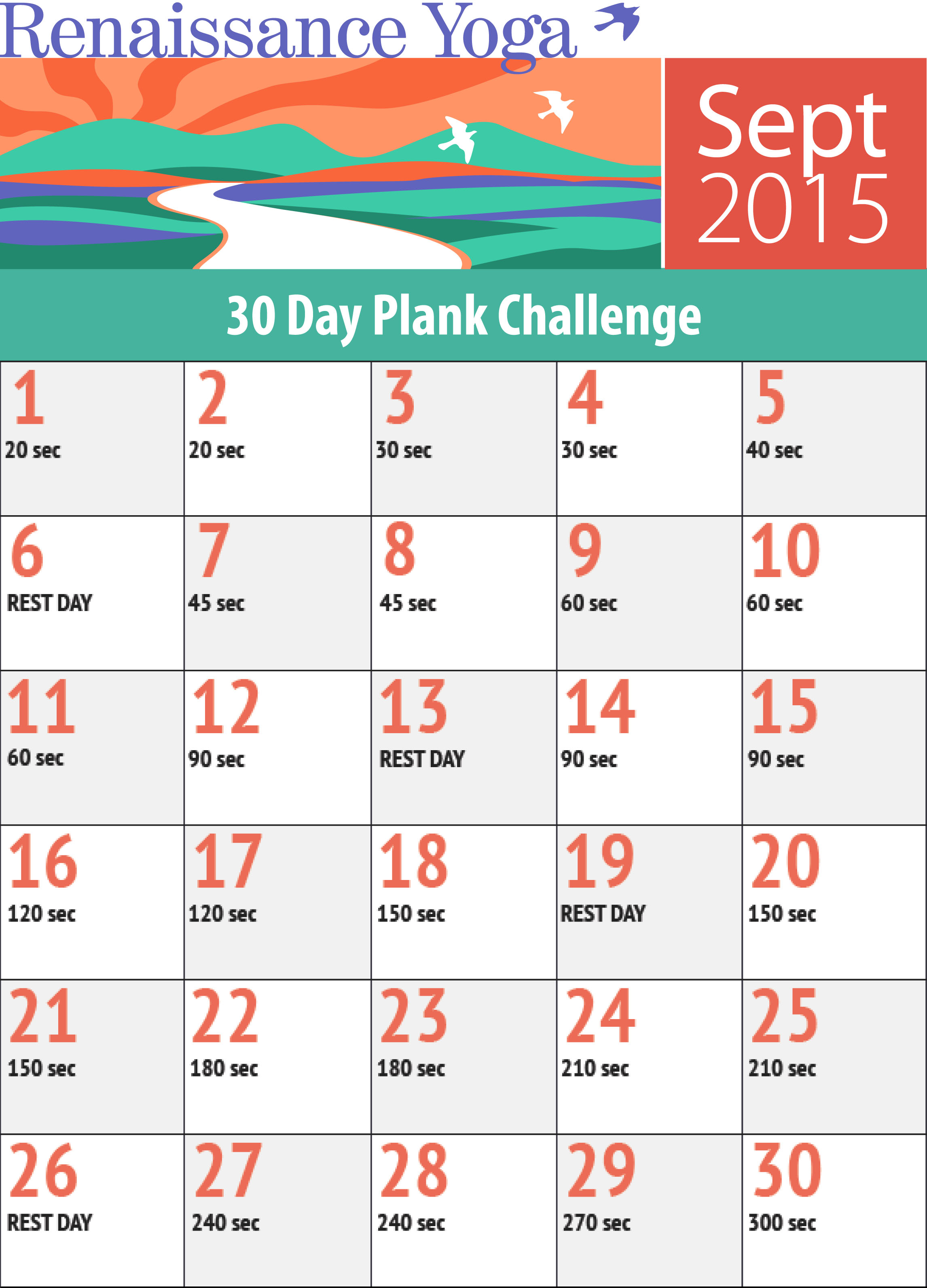 At the same time – remember that this is challange – and that means it may vary from person to person. So empower yourself by personalizing the challenge in a way that suits you. You might considering topping out at a minute or transitioning to a more restful pose as needed. There are a lot of ways to do this – and we have many options enlisted below the Plank Challenge calendar.