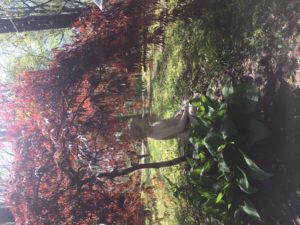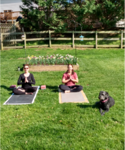 It’s so nice listening to your podcast and classes! Sasha, our puggle is pictured here with The Buddha in our front yard.