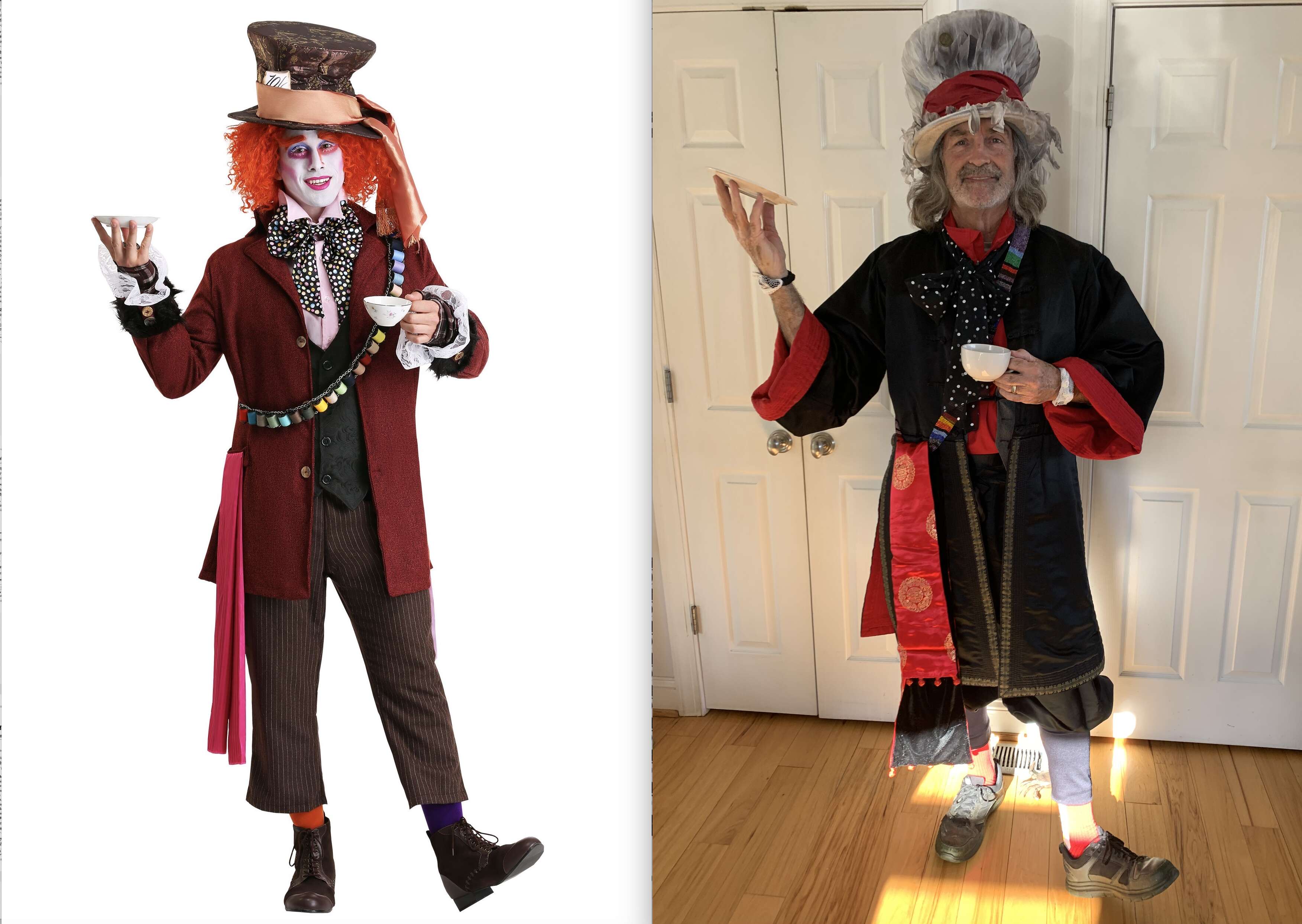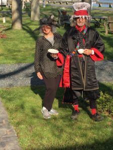 Once I had the chapeau, attaching the honorary button –  I decided Bill looked a bit like the ‘ Mad Hatter’ so decided to complete the ensemble  🙂 Time ran out – or  I certainly would have become his ‘ Queen of Hearts ‘ — But, after 47yrs of marriage, I think I may already be…