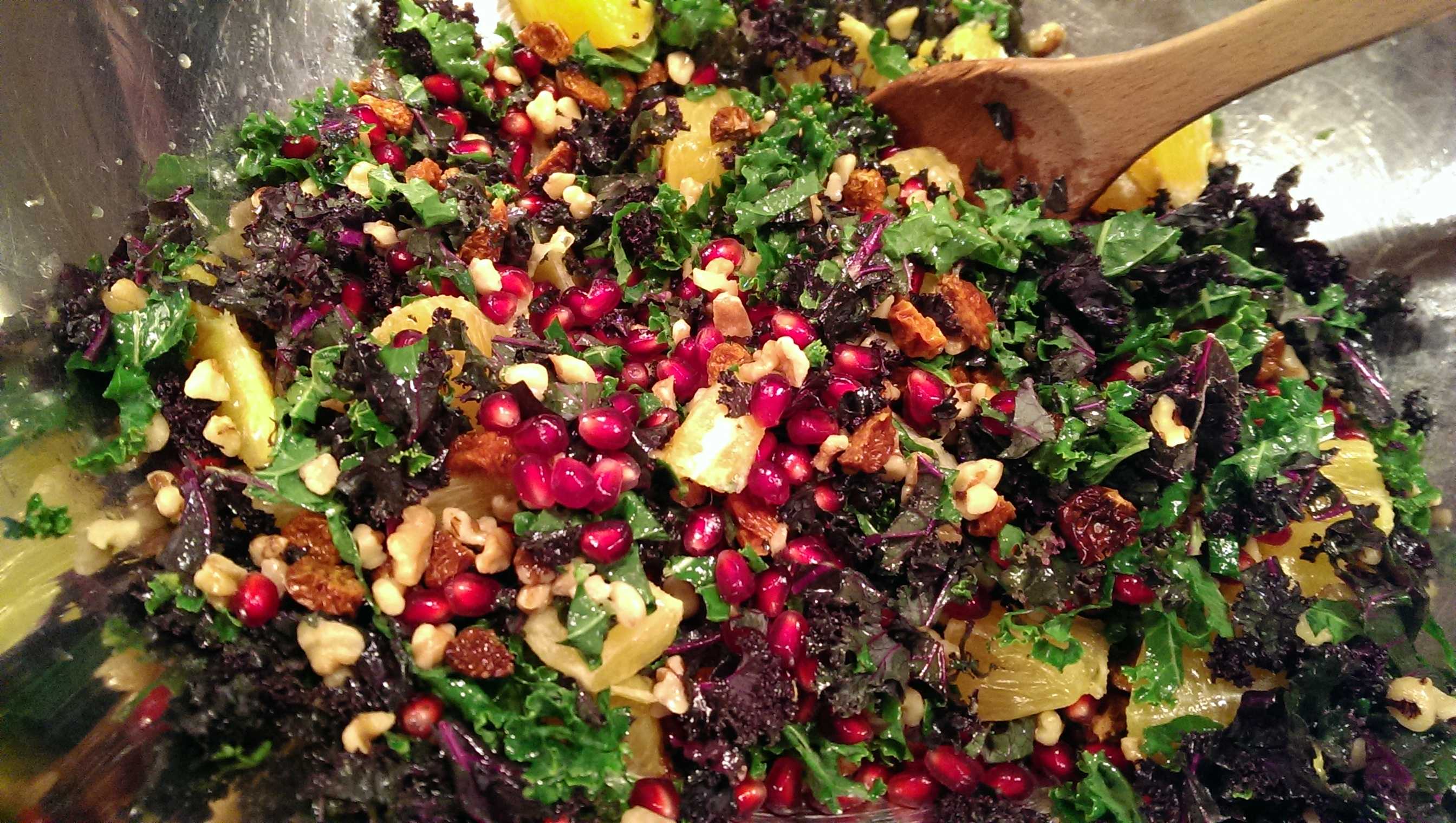 Indeed Bethanne and Kenny presented a number of appetizers including this Raw Kale salad with pomegranate seeds and golden berries. Recipe below…