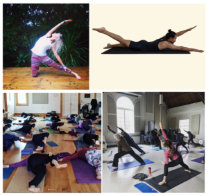 PART I: Supine / utksepa mudra / gentle hip movements / supported bridge pose / hip opener / supine spine twist & variation / bound angle / happy baby pose with extension / legs up / seated / wide angle fold / table / down dog / standing meditation