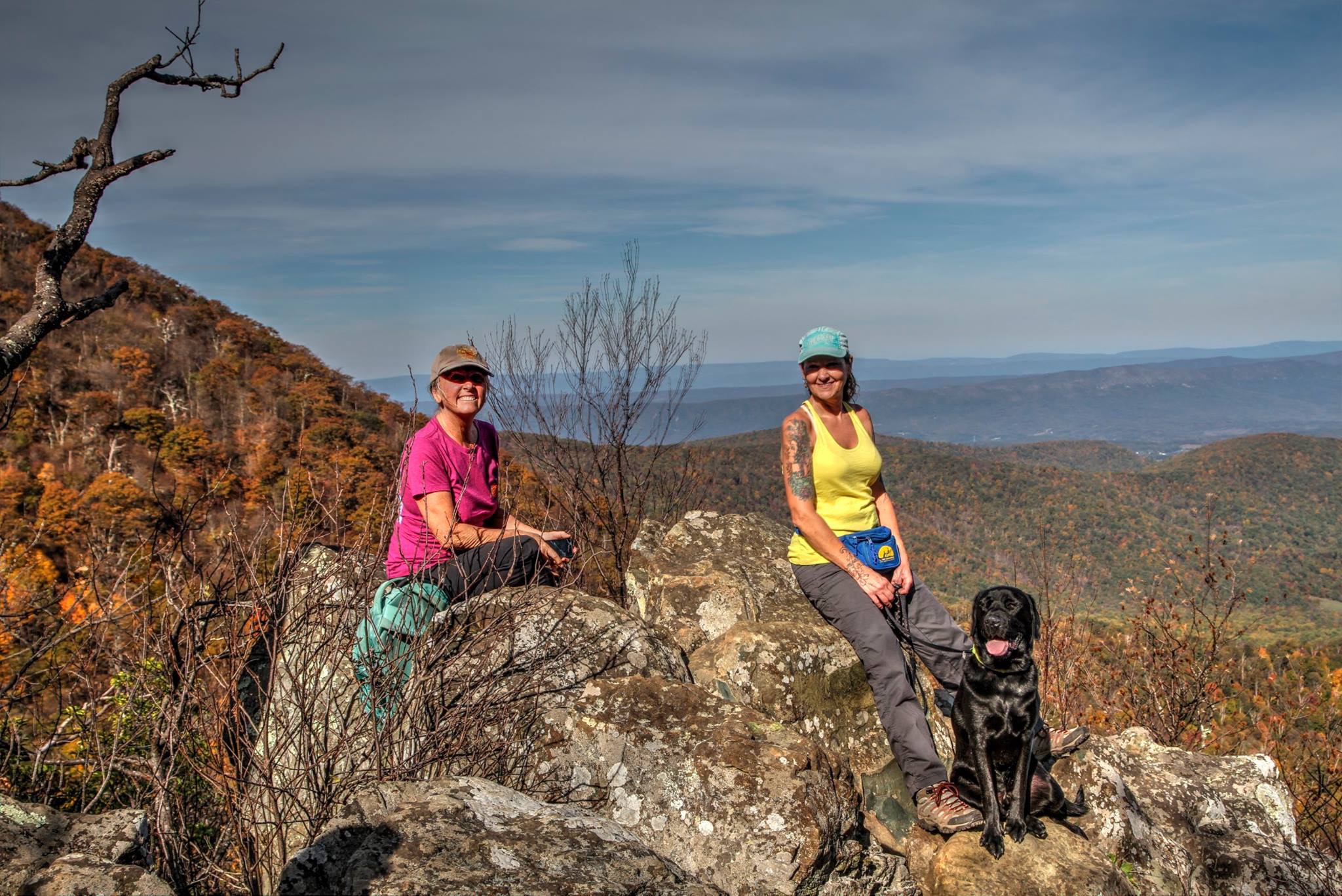 Some of our local yogis did some hiking last week (Shenandoah National Park, Hogback Mt) & caught some grand vistas. Along the way they also got into a few yoga poses, blending in with the natural setting. Their four-legged companion, Liam, also had a glorious outing – this being one of his last days before heading off to college, i.e. service dog training. Enjoy these stunning photos…