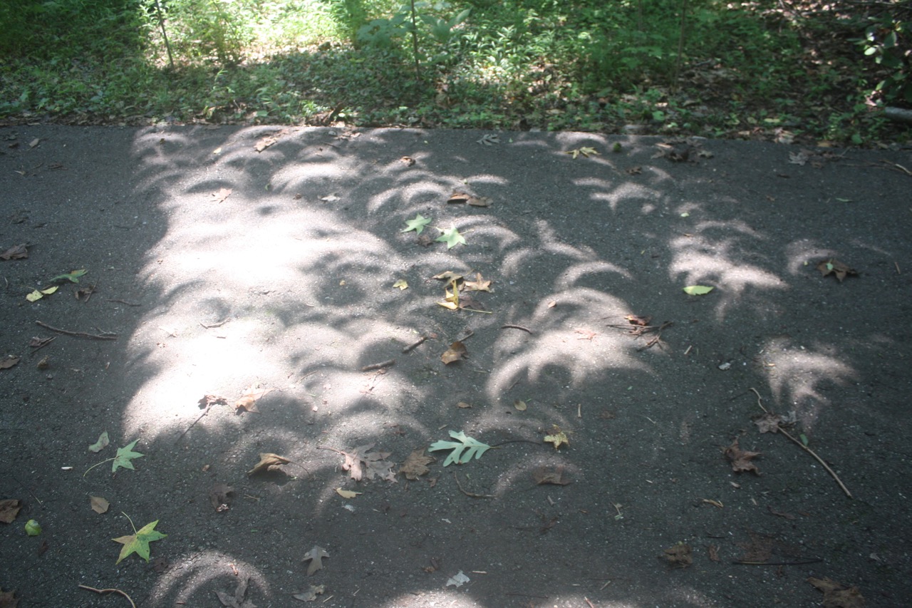 The earlier eclipse blog post (link appended below) looked upwards, here the gaze is towards the ground…catching the shadows of the 80% eclipse.