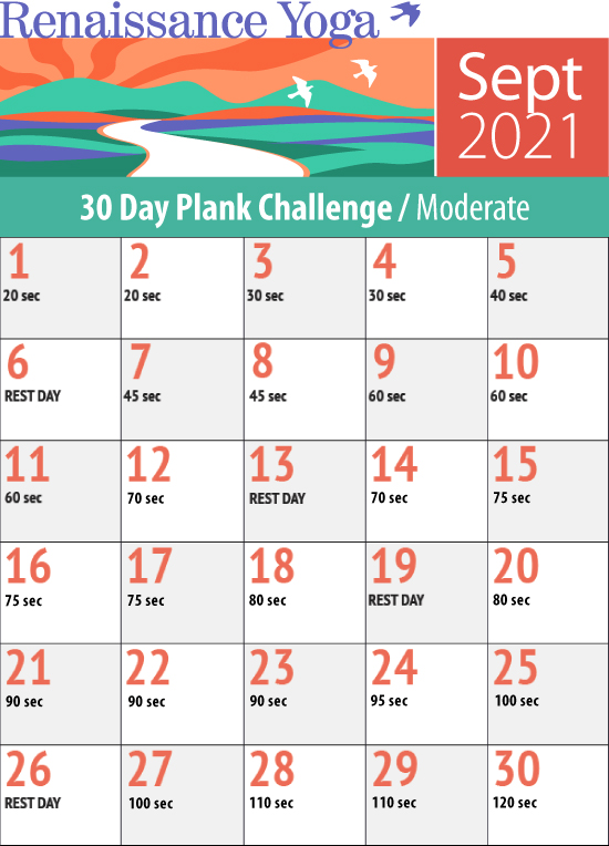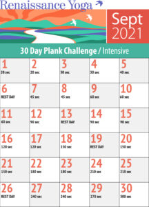 Overview: Great to have you on board for the Sep 2021 Plank Challenge. Remember that this is a challenge – and that means it may vary from person to person. Empower yourself by personalizing the challenge in a way that suits you. You might consider topping out at a minute or transitioning to a more restful pose as needed.