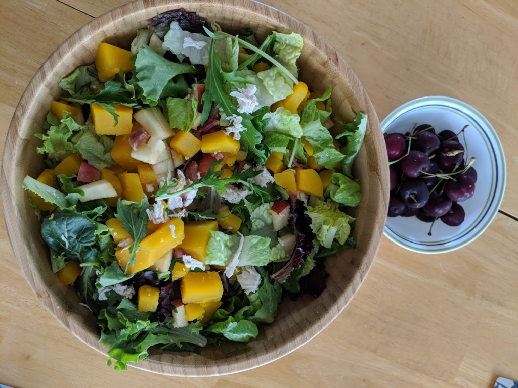 Evan’s salad featuring: Mixed Greens, Butternut Squash, Apples